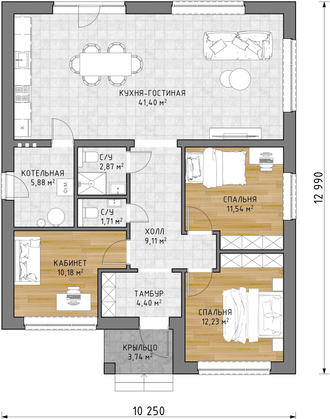 Зачастую Клиенты просят возвести дом с монтажом инженерных систем (канализация и водоснабжение, отопление, электрика), монтажом стяжки на полах и штукатурки на стенах, чтобы иметь возможность получить дом, подготовленный к чистовому ремонту. Данные этапы мы, как, вероятно, и все остальные, и именуем «под ключ».