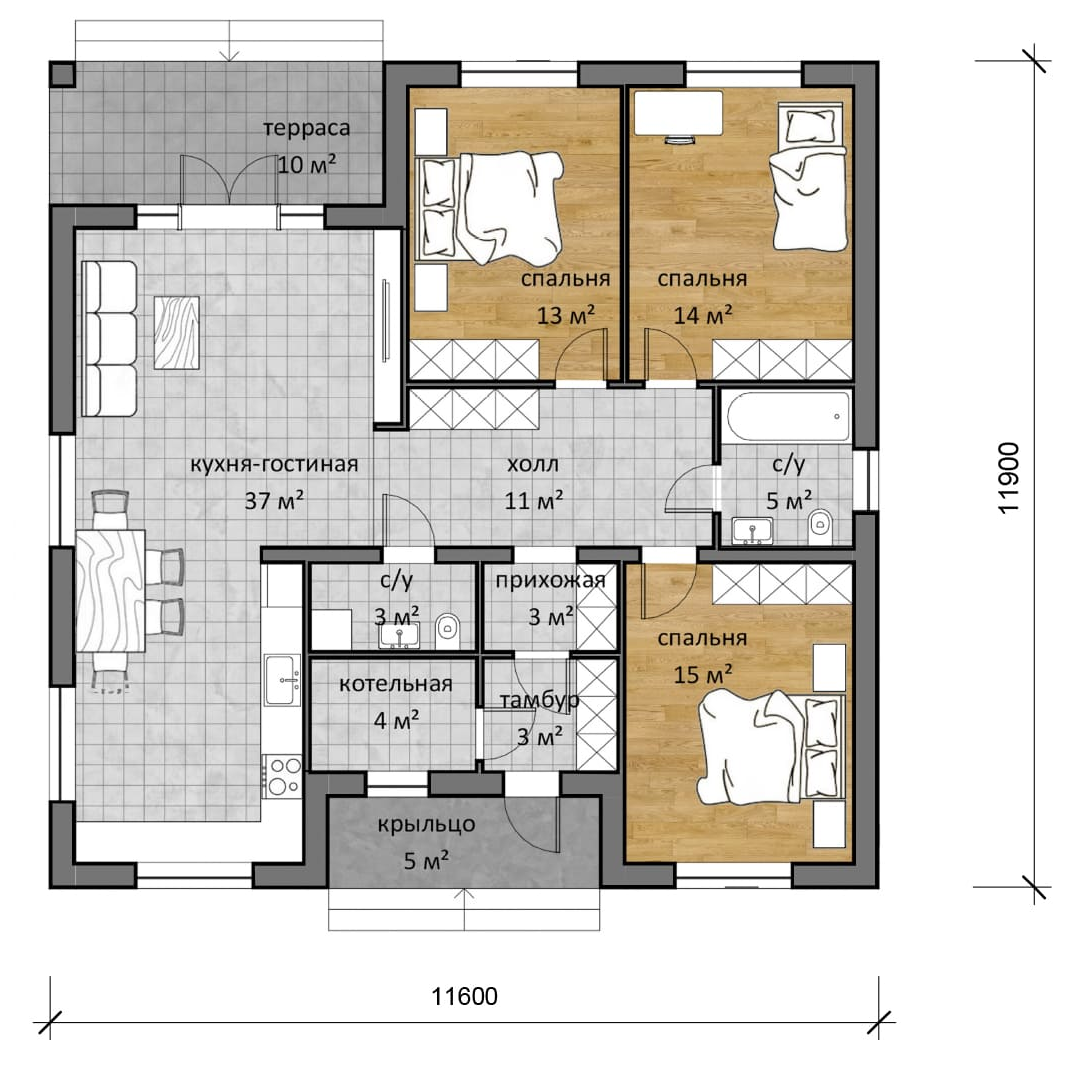 11,6х11,9 м