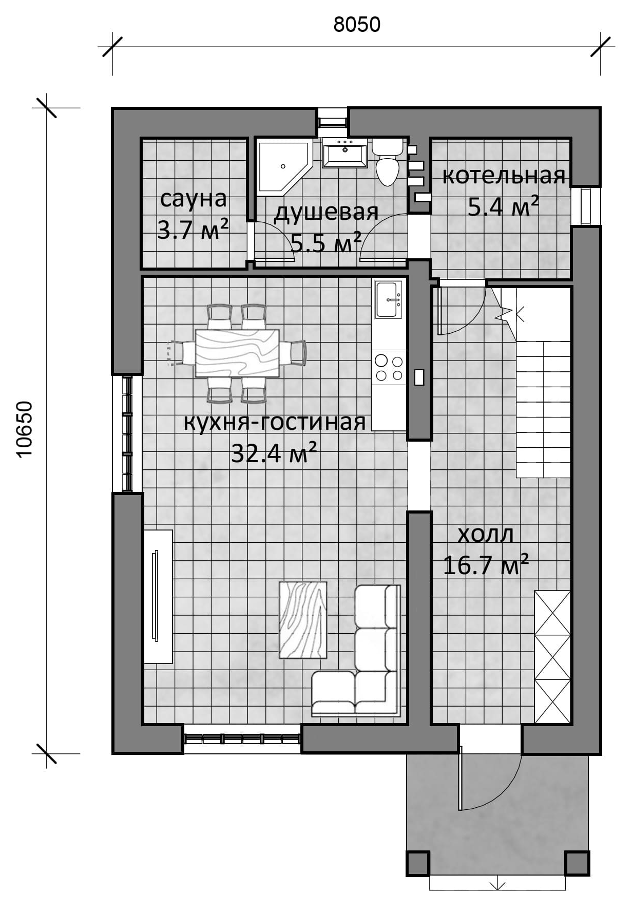 8х10,6 м